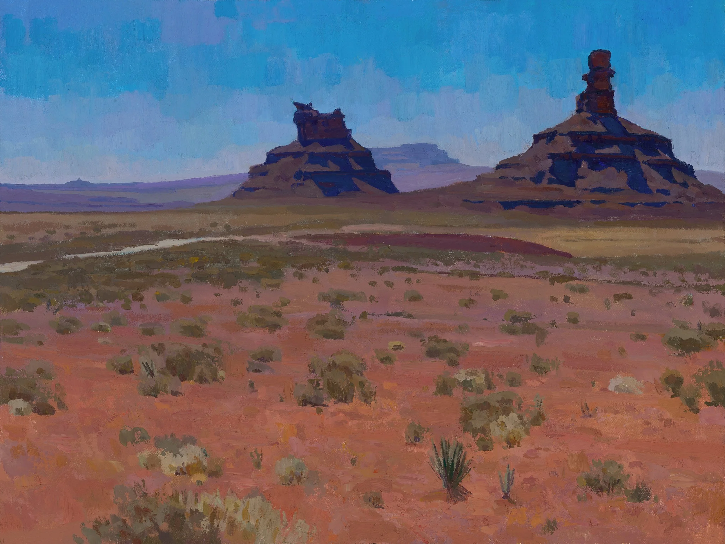 Growing up in California, Merrell was introduced to the fundamentals of painting and working outdoors at an early age. After he moved to the East Coast to attend The University of the Arts in Philadelphia, being exposed to European and modern art broadened Merrell’s artistic influences and perception. His strong foundation in landscape painting and illustration continued when he transferred to ArtCenter College of Design in Pasadena, while his newfound interest in modern art shaped his path forward as a painter and helped him home in on his own unique approach.